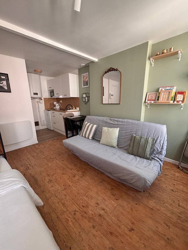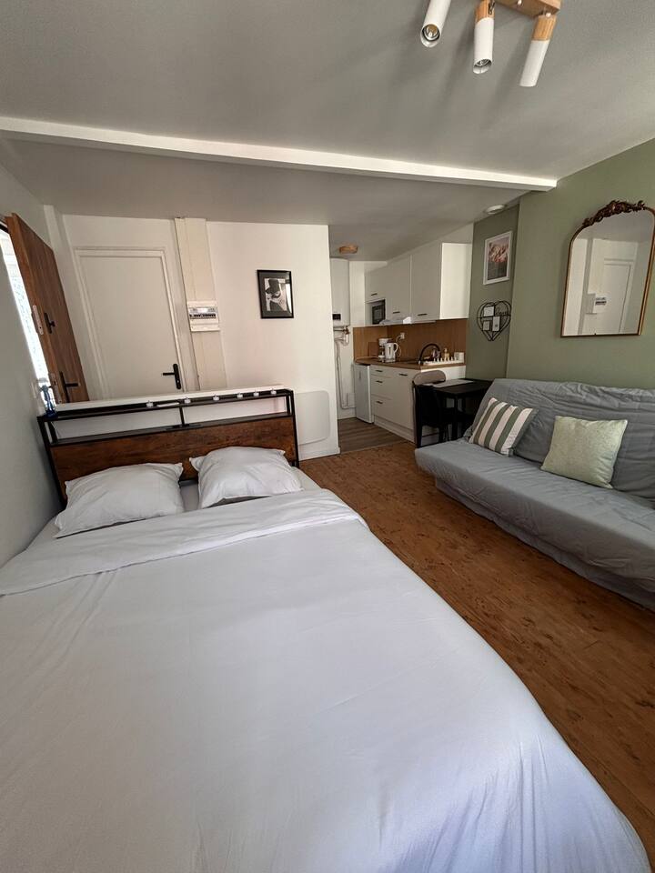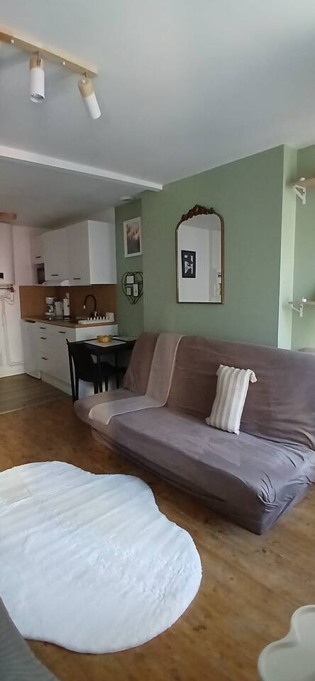 Bellevue – Escapade romantique dans un studio de charme Bienvenue à Bellevue, un studio raffiné niché au 2e étage (sans ascenseur) d’une maison de 1800 entièrement rénovée. Pensé pour une escapade à deux, ce logement offre un mélange subtil de charme historique et de confort moderne, idéal pour un séjour reposant, romantique ou même télétravailler dans un cadre paisible. Configuration : 1 lit double confortable 1 salle de bain moderne 1 canapé Lit Cuisine équipée : plaques, frigo, four, ustensiles… Le studio est entièrement équipé : Wi-Fi, rangements, linge de lit et serviettes fournis. ⚠️ À noter : Les parties communes de l’immeuble sont en rénovation Bellevue est l’endroit idéal pour un séjour élégant, intimiste et confortable, au cœur d’un bâtiment chargé d’histoire.