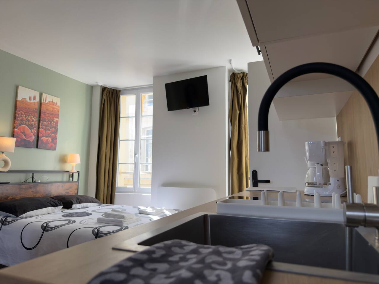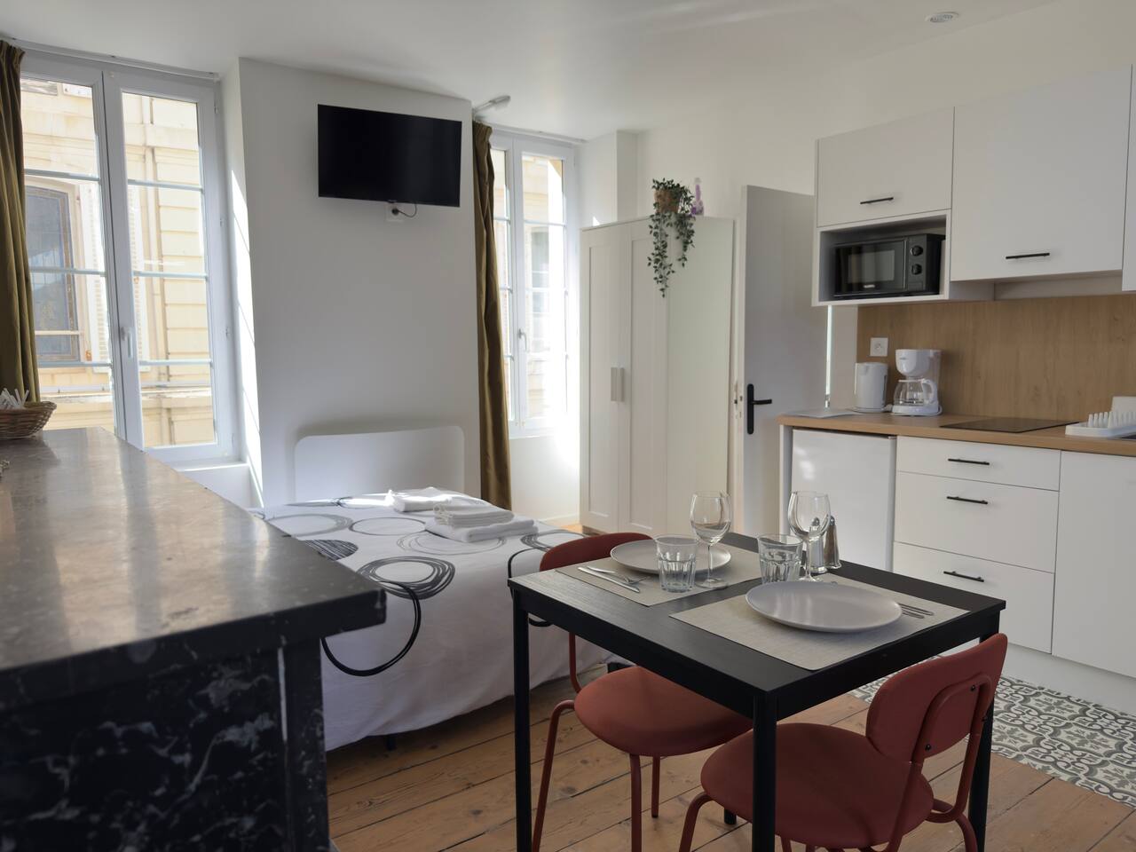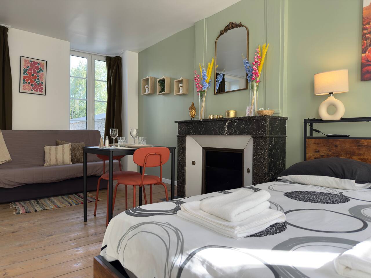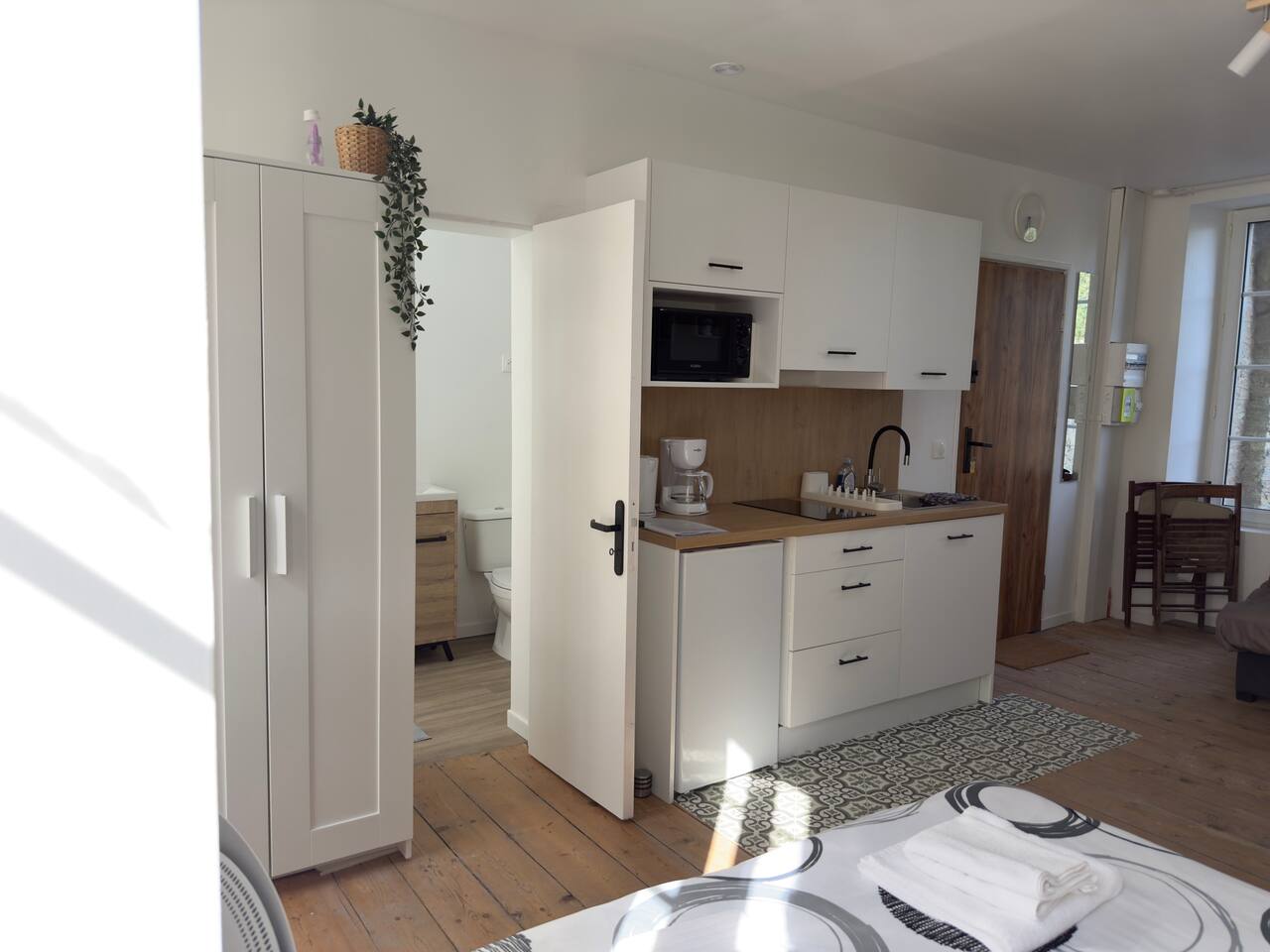 Bienvenue à La Marina, un T1 lumineux et fonctionnel de 25,91 m², idéalement situé au 1er étage d’une maison de caractère du XIXe siècle rénovée avec soin. Cet espace a été pensé pour offrir tout le confort moderne : Un lit double confortable Une cuisine ouverte équipée (plaques, frigo, micro-ondes, vaisselle…) Une salle de bain privative et moderne Rangements pratiques pour un séjour sans encombre La Marina est un cocon élégant, parfait pour un séjour à deux ou pour un déplacement professionnel. Le logement est décoré avec soin, dans un style sobre et chaleureux, et bénéficie de Wi-Fi gratuit et de linge de maison fourni. L’arrivée est autonome via digicode et boîte à clés, pour une arrivée flexible et discrète. Il y a des travaux au niveau du jardin et du batiment mitoyen.